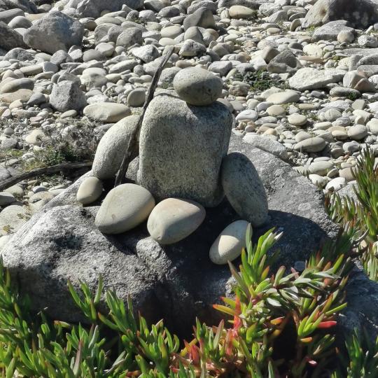 Carlos hat gestern einen Pilger aus Stein gebastelt.