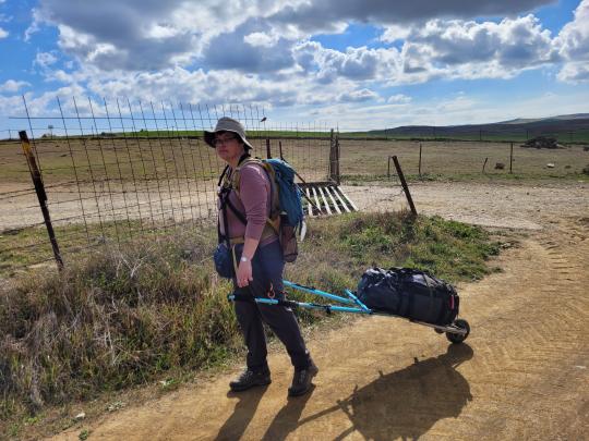Kurz nachdem ich also wieder auf dem Camino unterwegs war, nach ca. 5 km nach dem Start, kam der mit grosser Furcht erwartete Bach. Es war mir dem Wagen, den ich selbstverständlich löste, nicht ganz einfach.